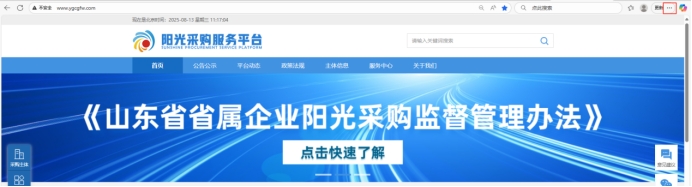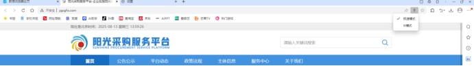 4.打开要访问的页面,阳光采购服务平台会在IE模式下重新加载。